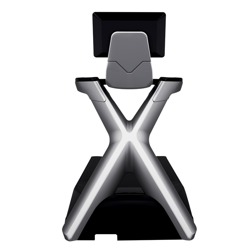 全新外观首次使用交叉立柱式设计,打破常规跑步机的双立柱设计。双立柱呈现X形状,架构上更加坚固以及视觉效果更加吸引用户使用。酷炫造型令用户体验前所未有的高端舒适体验感,仿佛是一台未来的跑步机。
